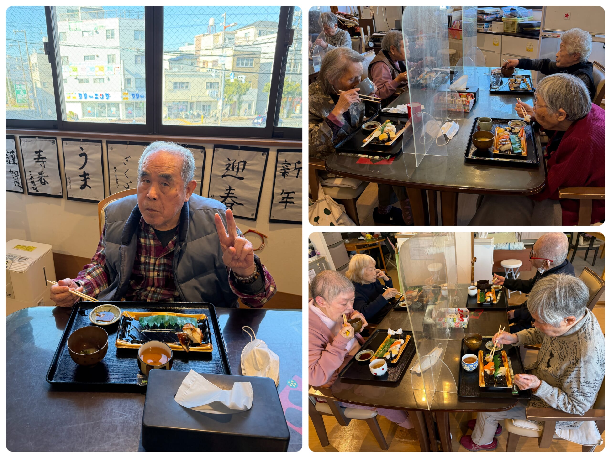 食事前のレクで「皆さんが食べたい物は何ですか?」と聞いたところ、圧倒的に「お寿司!」と。