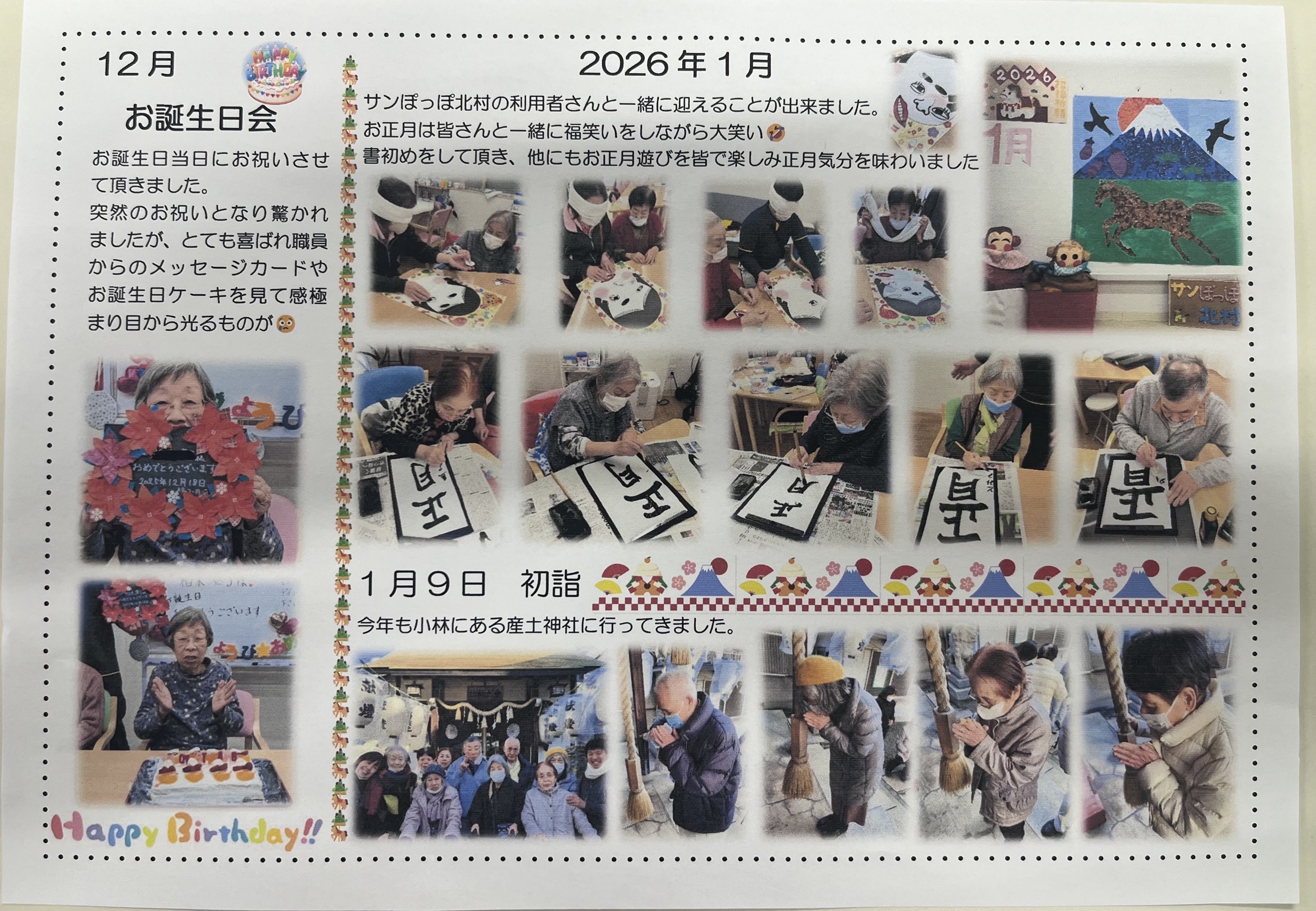 サンぽっぽ北村です😆✨R7.11~R8.1のイベント通信を作成しました!秋の遠足やクリスマス、お正月などイベント盛りだくさんでした😊ぜひご覧くださいませ✨